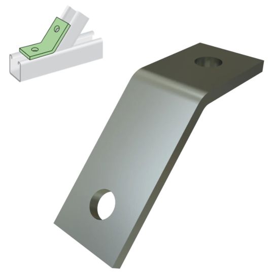 Strut Joining Plate Angled Z Shape, 45 deg Angle, 2 Hole, 14 mm Hole Diameter, 21 mm From End 48 mm On Center Hole Spacing, For Use With 41 mm Width Channel/Strut, Steel, Hot Dip Galvanised, 76 mm Length, 60 mm Width, 2.5 Safety Factor