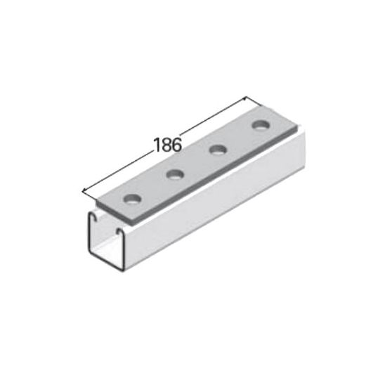 Strut Joining Plate Flat, 4 Hole, 14 mm Hole Diameter, 20.5 mm From End 47.5 mm On Center Hole Spacing, Steel, Hot Dip Galvanised, 6 mm Thickness, 186 mm Length, 40 mm Width