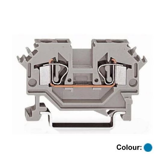 Our through terminal block (item number 281-604) ensures effortless electrical installations. Whether for industrial or building applications, you can use our through terminal blocks to connect electrical conductors quickly and safely. We offer variants for both classic through-wiring and potential distribution. Our through rail-mount terminal block is rated for 800 V and is designed for use with a rated current of up to 32 A. Ensure that the strip lengths are between 9 mm and 10 mm when connecting conductors to this through terminal block. This product features conductor terminals and utilizes CAGE CLAMP®. Our tried-and-tested universal connection known as CAGE CLAMP® is the industry standard for connection technology and electrical interconnections. Depending on the conductor type, this through terminal block is designed for conductor cross sections ranging from 0.08 sq-mm to 4 sq-mm . It has one level. The single potential can connect using the two clamping points The blue housing is made of polyamide (PA66) for insulation. An operating tool is used to operate this through rail-mount terminal block. These through rail-mount terminal blocks are mounted using DIN-35 rails.. You can connect copper, aluminium conductors thanks to front-entry wiring.