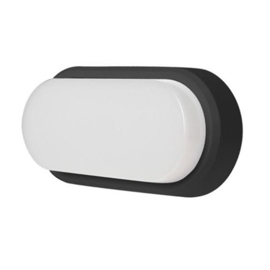Bulkhead, LED, 12 Watt, LED, Oval, 4000K, 930 Lumens, 30000 hr Average Lamp Life, 120 deg Beam Angle, CRI: 80, Diffuser Type: Opal, Warm White and Cool White, Power Factor: 0.5, IP54, Polycarbonate, Black, White, 230 mm Length, 105 mm Width, 55 mm Height