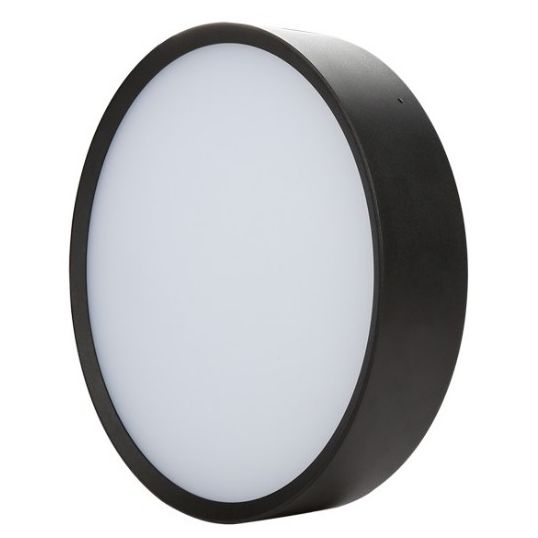 Bulkhead Light, SMD LED, 18 Watt, 240 Volt, LED, 3000/4000/5700K, 1400/1750/1500 Lumens, 50000 hr Average Lamp Life, 110 deg Beam Angle, CRI: 80, Diffuser Type: Polycarbonate, Power Factor: 0.9, Wall/Ceiling Mounting, IP65, Aluminium, Black, 250 mm Diameter, -20 to 45 deg C, 58 mm Height