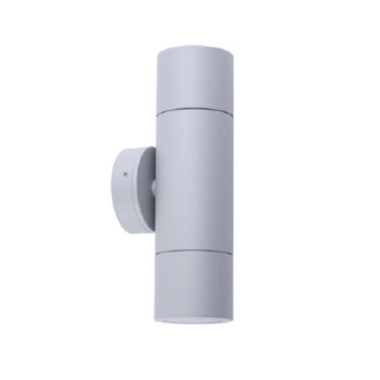 Exterior Wall Pillar Spot Light, Halogen, 35 Watt, 110-265 Volt AC Input Voltage, 50/60 Hz Input Frequency, Up/Down, 2xGU10 Base, Glass Diffuser, Wall Mounting, IP65, Aluminium, Powder Coated Matte Grey, 210 mm Length, 60 mm Width, 85 mm Height, 85 mm Projection, Exterior