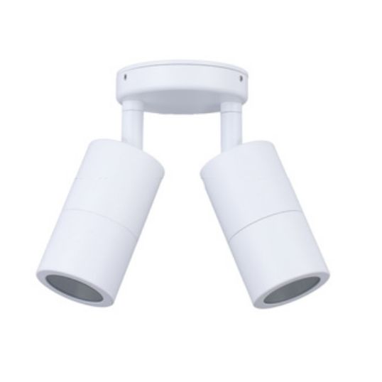 Wall Pillar Double Adjustable, Halogen, 35 Watt Max,110-265 Volt AC, 50/60 Hz, Halogen, 2XGU10 Lamp Base, Round Base, Wall Mount, IP65, Aluminium, Powder Coated White, 110 mm Length, 100 mm Width, 175 mm Projection, Exterior