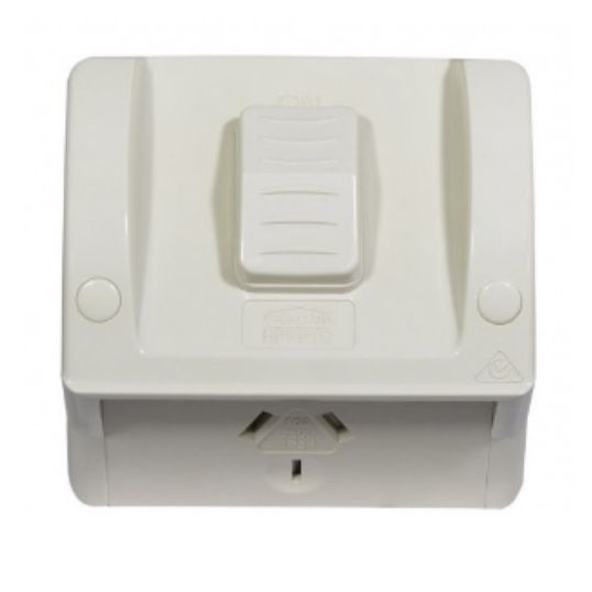 GSME GPO Switched Outlet Weatherproof Outdoor Standard 1 Gang 10A 250V IP54 Shallow Base Grey