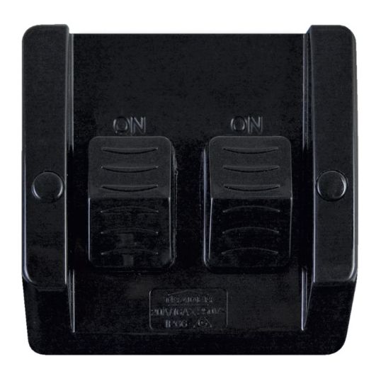 Switch Weatherproof, 250 Volt Switch, 20 Amp/16 AX, 2 Switches, IP66, Surface Mounting, Screw Terminal, UV Stabilised Polycarbonate, Black, 84 mm Height, 84 mm Width, 65 mm Depth, Outdoor