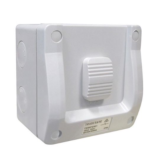 Tradesave Switch Surface Mount Weatherproof Heavy Duty 1 Gang 15A 250-440V IP66 Grey