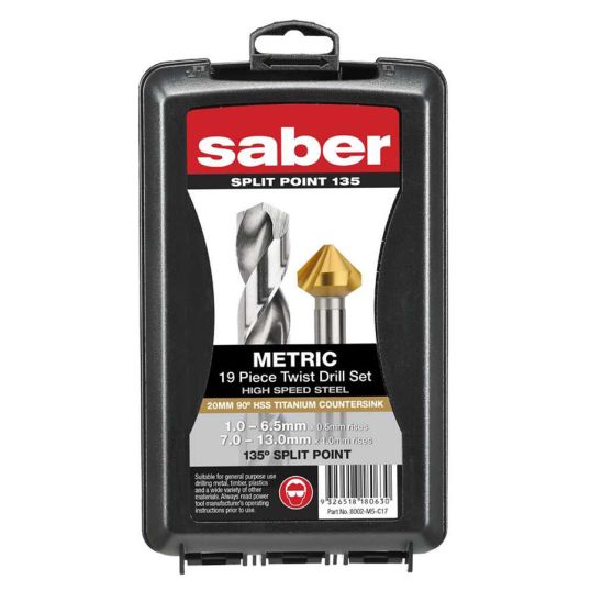 19 Piece Bright HSS Jobber Drill Set Bonus 20mm Countersink
