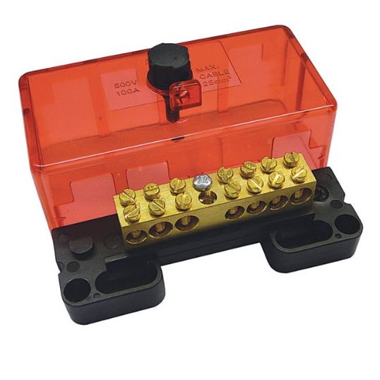 Active Link, 500 Volt, 100 Amp, 7 Hole, Front Wiring Connection, For Use With 16-25 sq-mm Cable, Panel Mounting, Red, 100 mm Length x 50 mm Width x 49 mm Depth