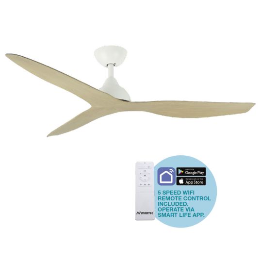 Ceiling Fan DC Wifi 1320mm Matt White/Oak