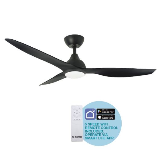 Ceiling Fan DC Wifi with LED Light 1320mm Matt Black