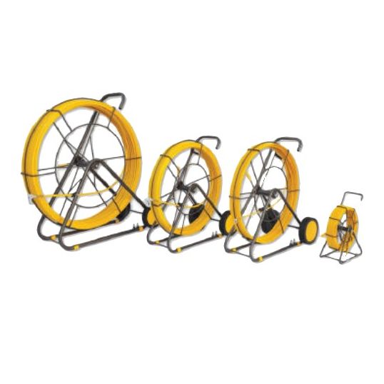 Duct Rod, 2000 kg; End Fittings: 290 kg, 400 mm Min Bend Diameter, 720 mm Storage Diameter, 6 mm Cable Diameter, Fibreglass, Yellow, 125 mtr Length