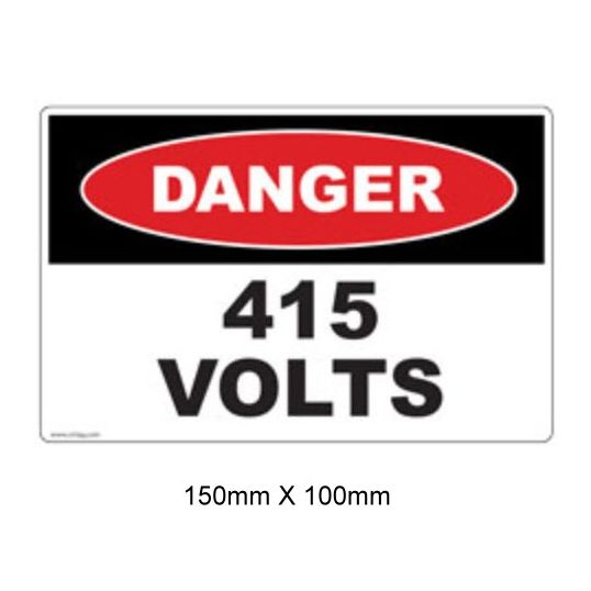 Electrical Safety Label, DANGER 415 VOLTS, Self Adhesive Vinyl, Black/White, 150 mm Length, 100 mm Width, 10 Pack