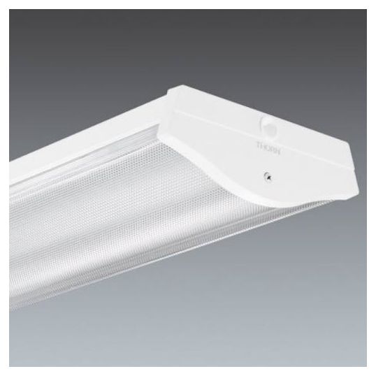 Fluorescent Batten Diffused Wide Body, LED, 43 Watt, Prismatic Diffuser Polycarbonate, Control Gear: Electronic, 3799 Lumens, 4000K, CRI: 80, 50000 hr Average Lamp Life, Dimmable, Surface Mounting, IP44, IK05, -10 to 25 deg C, Steel, White, 1220 mm Length, 217 mm Width, 90 mm Height