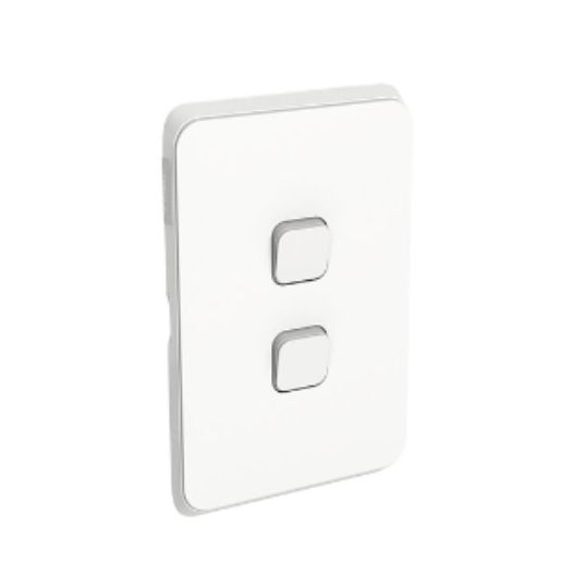 Switch Cover Skin, 2 Gang, For Use With Domestic Switching Devices, Horizontal/Vertical Orientation, Clip-On Terminal, Flush Mounting, Polycarbonate/ABS/Plastic, Vivid White, Matte, 0 to 45 deg C, 120 mm Height, 78 mm Width, 9 mm Depth