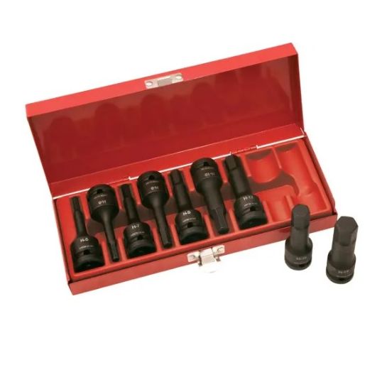 Impact Socket Set, 1/2 in Drive, In-Hex Drive, 9 Pieces, Chrome Vanadium Blade Material