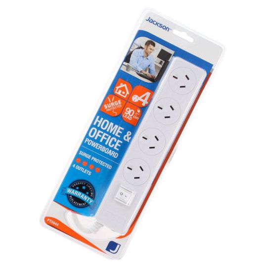 Jackson Powerboard Surge and Overload Protection 4 Way 4 Gang 10A 240V 1.8M White