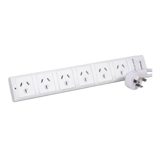 Powertech Powerboard Surge and Overload Protection 6 Way 10A 230/240V 2400W 0.9M White