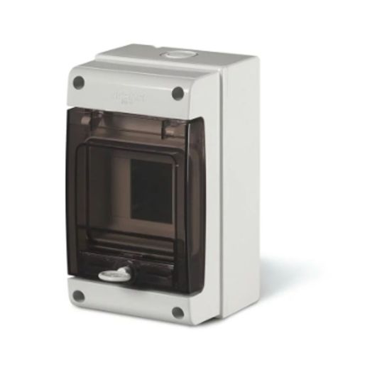 Switchboard Enclosure, 1 Rows, 4 Modules, IP66, Surface, Plastic, Grey, 190mm Height x 112mm Width x 106mm Depth