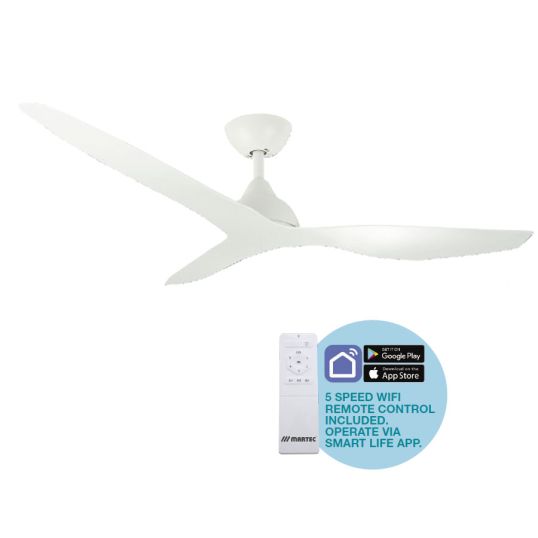 Smart Ceiling Fan With Wi-Fi Remote Control, 52 in, 3 Blade, 220-240 Volt, 50/60 Hz, 45 Watt Motor, 235 rpm Motor Speed, Brushless DC Motor, Remote Control, 10530 cu-m/hr, 10 deg Blade Pitch, Steel Body, Steel Blade, Steel Canopy, Matte White Body, Matt White Blade, 263 mm Height