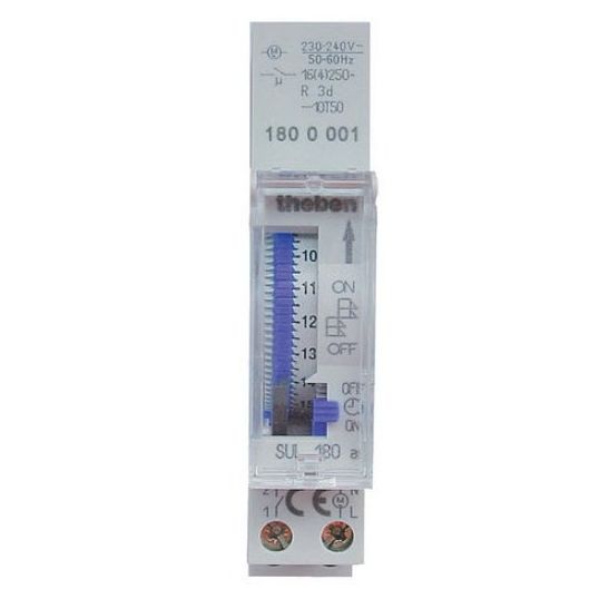 Time Switch Analogue 24 Hour Reserve, 230-240 Volt, 16 Amp, 50/60 Hz, 1 Module, 1 Channel, Screw Connection, Normally Opened Contact Type, IP20, DIN Rail Mounting, 128 mm Height x 65.5 mm Width x 34 mm Depth, 10 to 50 deg C